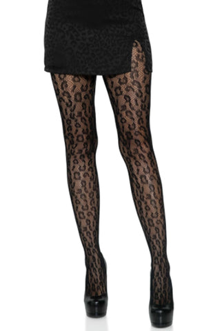 Leopard Pattern Knitted Seamless Fishnet Chemise with Rhinestone Accents