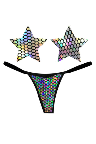 Mirrored Mayhem Holographic G-String Knix Pasties & Panties Set