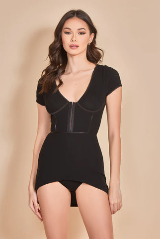 Ribbon Lace Up Bodystocking Dress