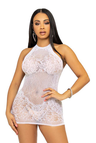 Iridescent Rhinestone Floral Lace Mini Dress, Lingerie Set