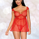Eyelash lace with stretch mesh babydoll and G-string set features underwire cups with strappy neckline and sparkly rhinestone button accent, mesh cap sleeves adjustable on the back and hook & eye back closure and matching eyelash lace g-string. Perfect for Casual, Beach, Vocation, Dinner, Party, Date, Daily, Honeymoon, Holiday And Photoshoot.