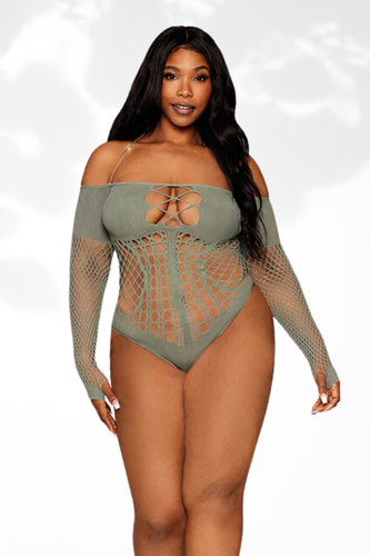 Plus Size Wild Dreams Plus Lace Teddy, Floral lace deep-V lace up Bodysuit