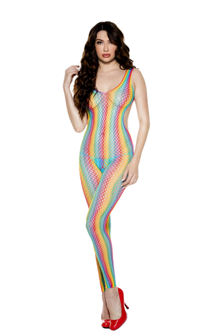All over fence net long sleeve bodystocking with Open Back & High Neckline