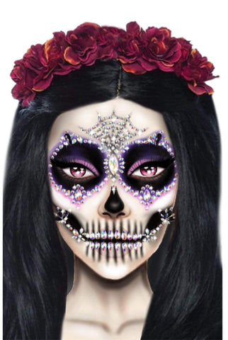 Calavera Skeleton Face Jewels Sticker, Halloween Costume Accessories