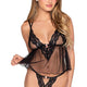 2-Piece Babydoll Lingerie Set: Includes a sheer lace-trimmed babydoll top with matching lace panty