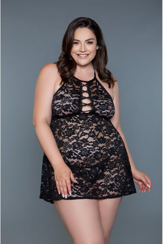 Novelty mesh embroidery babydoll, Two Piece Lingerie SetSave Upto 20%
