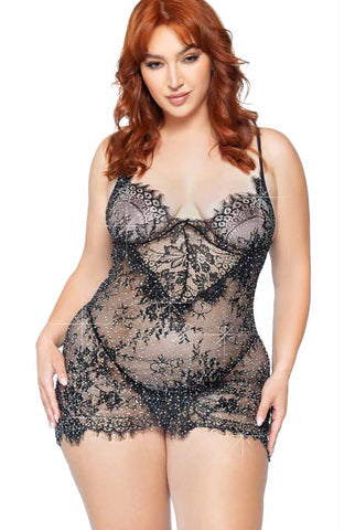 Plus Size Sweet Temptation Babydoll Set – Plunging Lace Neckline, Wire-Free Seamed Cups, Adjustable Straps & Crotchless BikiniSave Upto 20%
