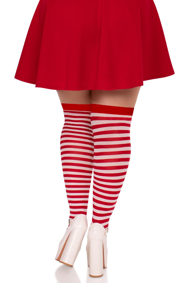 Cari Plus Striped Stockings, Nylon Thigh Highs with Stripes