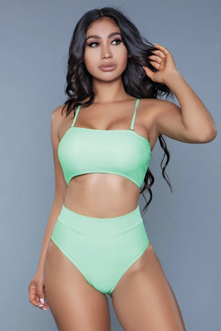 Chanity High-Waisted Bikini Set – Bandeau Top with Removable Straps & Full Coverage Bottom