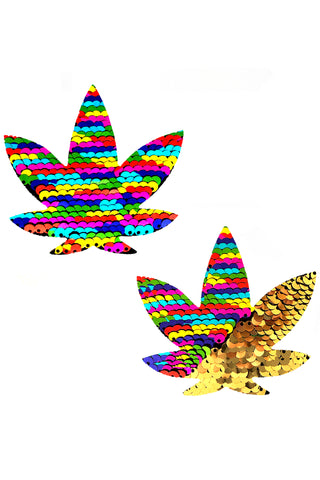 Ariel Green to Black Flip Sequin Gold Dope AF Weed Leaf PastiesSave Upto 20%