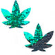 Ariel Green to Black Flip Sequin Gold DOPE AF Weed Leaf Nipztix are perfect for you and will leave everyone that looks at you dazed and confused. Each pack includes 2 Nipztix pasties.