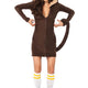 Get ready for some serious monkey business in the Cozy Monkey Costume! This fun and cheeky Halloween costume includes a soft fleece zip-front dress, complete with a long curly tail, a silly-face hood with ears, and an irresistible banana detail on the back. The playful design is perfect for costume parties or cozying up on cool nights. Add leggings or tights for a modest twist—or go bananas just as you are! Whether you’re swinging into a party or staying comfy at home, this monkey costume is a guaranteed crowd-pleaser.