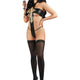 Indulge in temptation with the Dark Desire Sister Teddy. This daring lingerie costume features a sleek, curve-hugging teddy adorned with a striking gold cross applique for an irresistibly bold look. The included sheer veil adds a dramatic finishing touch, making this piece perfect for unforgettable roleplay moments or statement lingerie styling. Designed to flatter while commanding attention, this sultry teddy is made for confident nights that break the rules. Necklace and hosiery not included.