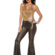 - Complete Set: Includes a backless draped chain top and shimmer bell-bottom pants for a true disco vibe.