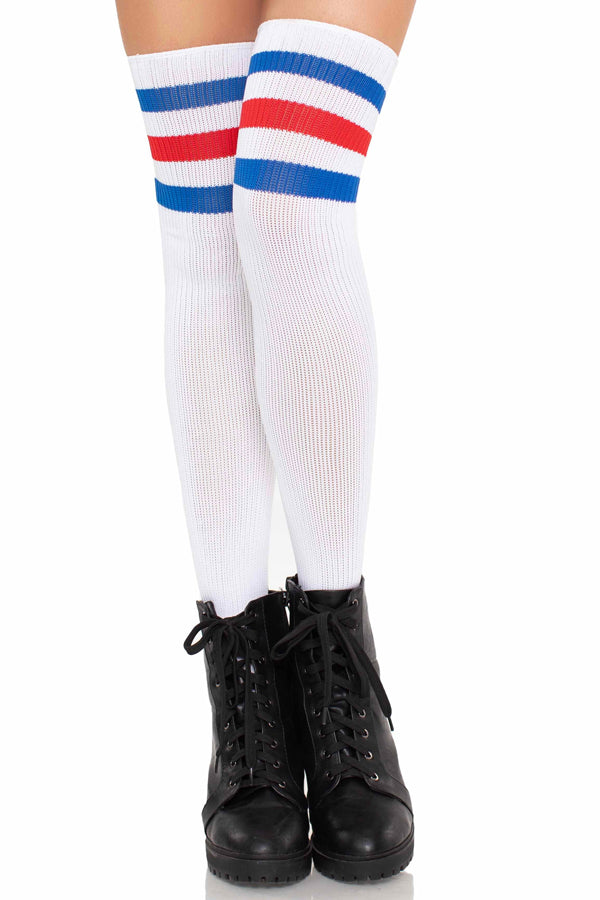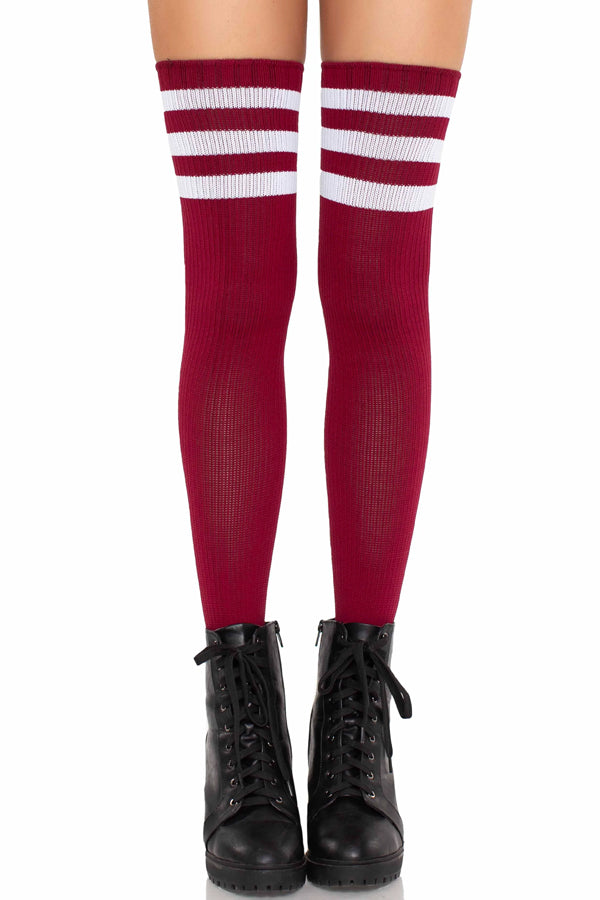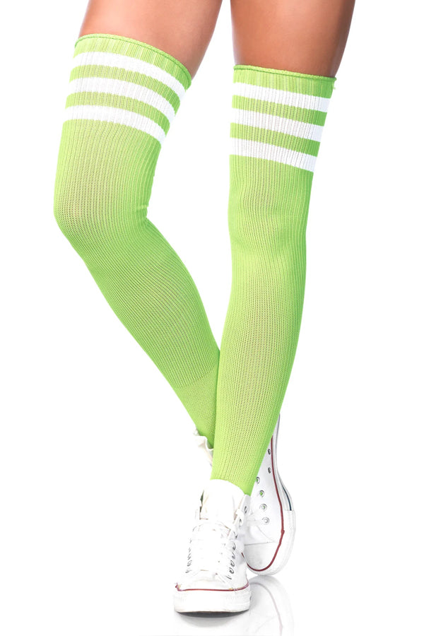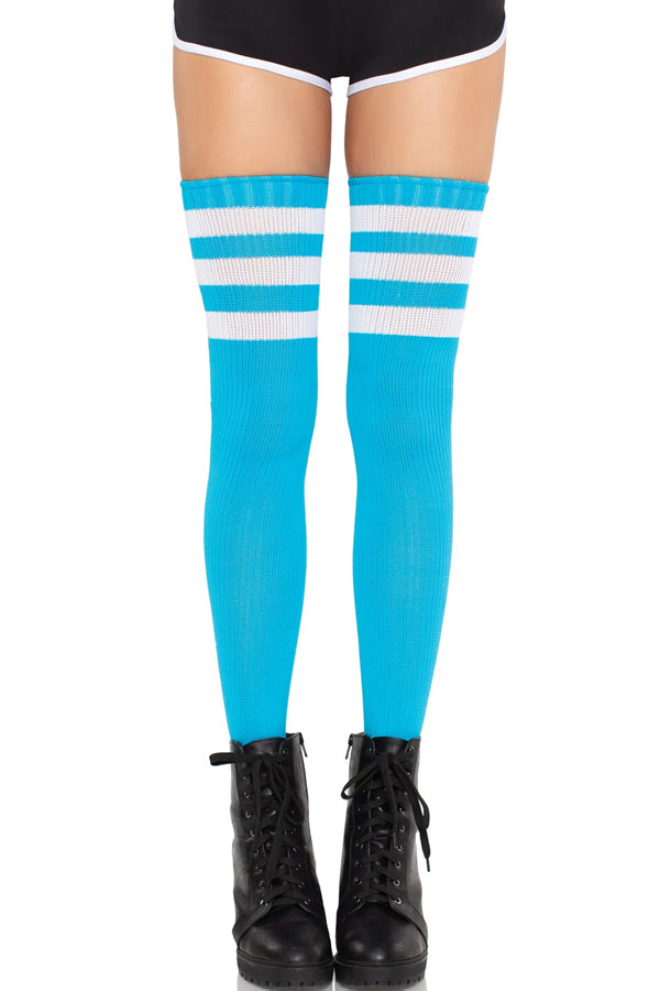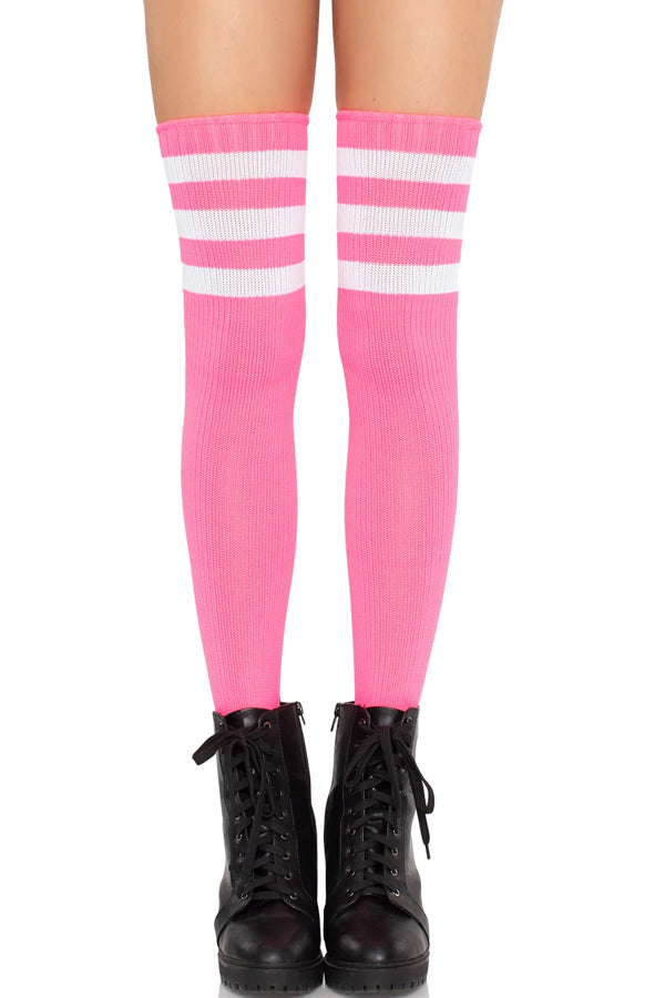 Sporty Athletic Thigh Highs: Features bold stripes and bright colors for a fun, athletic-inspired look.