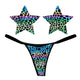 Reincarnate your neon animal-print obsession with L. FRANKenstein rainbow reflective Naughty Knix sexy g-string thong with matching Nipztix nipple covers. While they are black with a dark gray print in the day, these shine with a neon rainbow brightness.