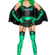 Wet look leaf print romper with attached cape, headband, gloves, and thigh high.
