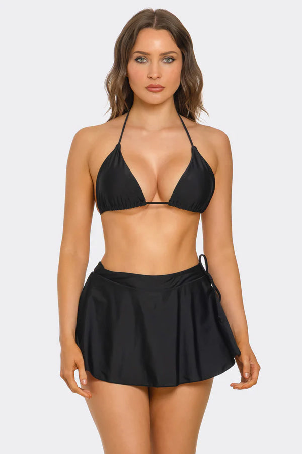 Stylish 2-Piece Swim Set: Includes an adjustable triangle bikini top and matching swim skirt bottom