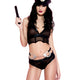 - 4-piece set: crop top, matching panty, hat & waist handcuffs