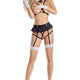 6-Piece Lingerie Set: Cupless strappy top, pleated crotchless garter belt, lace fingerless gloves, collar with attached tie, and lace garters