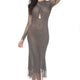 Turn every entrance into a moment with this stunning Rhinestone Mesh Maxi Dress. Designed to dazzle, this sheer maxi silhouette features an all-over rhinestone mesh that catches the light from every angle. The dress offers a body-skimming fit with long sleeves, a high neckline, and a subtle front keyhole cutout that adds a seductive touch without overpowering the elegance.