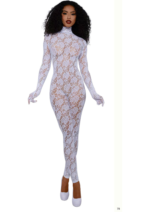 Seamless Large Rose Design Fishnet Catsuit Bodystocking