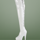 Step into the spotlight and own the room with the Stretch Thigh Boot. These bold and glamorous boots are designed to elevate your style and confidence. Featuring a striking 7-inch stiletto heel and a 2 3/4-inch platform, they offer a daring yet balanced look. The alluring rear lace-up detail provides a customizable fit, while the stretch material hugs your legs for a sleek and sexy silhouette. With a full inner side zip closure, these boots are as practical as they are stunning. Whether you're hitting the stage, a party, or making a fashion statement, this shoe will have all eyes on you.