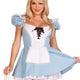 Fall down the rabbit hole in style with this flirty 3-Piece Alice Costume Set. Inspired by the classic fairytale character, this sexy costume features a stretch twill apron dress with a corset-style lace-up front and a built-in petticoat to create a flouncy, feminine shape. A pin-on back bow and matching bow headband complete the playful, whimsical look.