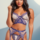 Indulge in elegance and seduction with this exquisite 3-piece lingerie set, designed to enhance your natural beauty and confidence. Featuring sheer stretch mesh with delicate floral contrast embroidery, this set includes a matching bra, garter belt, and thong panty—all adorned with gold hardware for a touch of luxury.