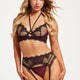 Indulge in elegance and seduction with this 3-piece lingerie set, featuring a fishnet and guipure lace bra, matching garter belt, and panty. The bra boasts a built-in halter design with adjustable straps, while the garter belt includes a lace-up back detail for a sultry touch. Designed with luxurious gold hardware, this set exudes sophistication and sensuality, making it perfect for a wedding night, honeymoon, Valentine’s Day, anniversary, or a romantic surprise.