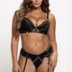 Three-Piece Set: Includes underwire bra, matching panty, and garter belt
