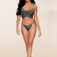 Velvet Venise applique with metallic silver details, bustier, and matching G-string feature front boning support with stretch mesh back, rhinestone detail, adjustable shoulder straps, and hook-and-eye back closure. This lingerie set provides a more comfortable and elegant experience. It is perfect for Casual, Beach, Vacation, Dinner, Party, Date, Daily, Honeymoon, Holiday, And Photoshoot. Give this dress to a girl as a Valentine's Day gift.